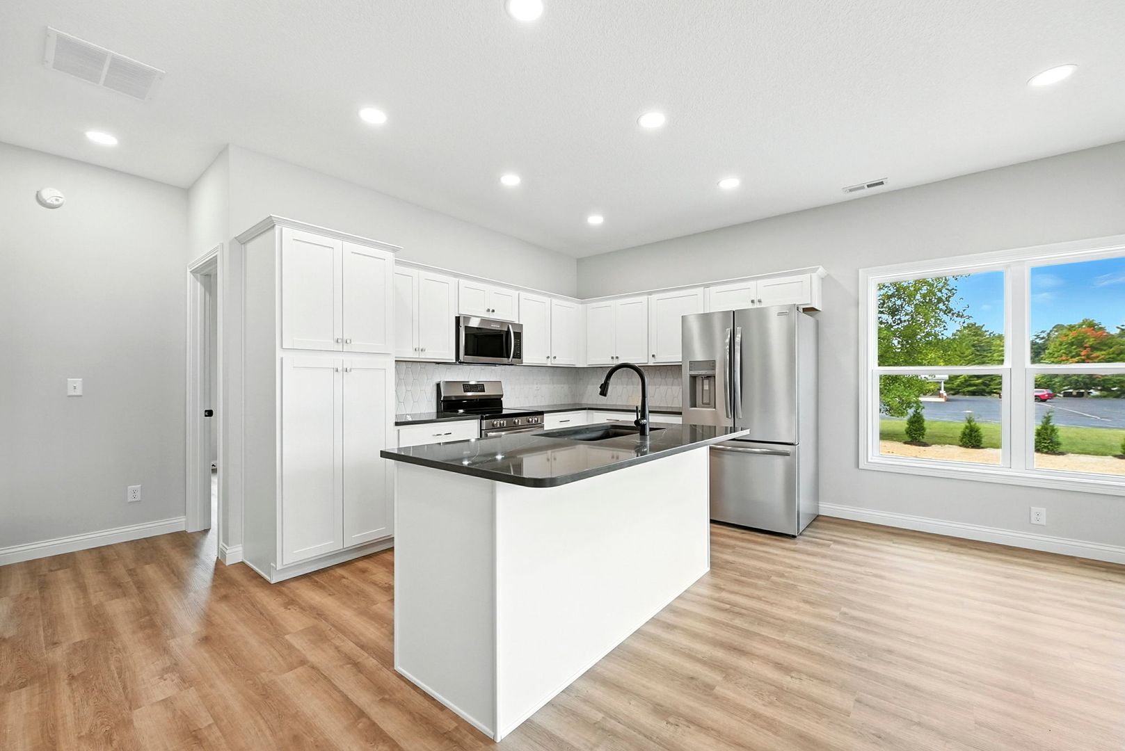 This beautiful new-build 2 bedroom, 1 bathroom home offers modern comfort and thoughtful design throughout. The open-concept living space features a cozy electric fireplace, perfect for relaxing evenings, and flows seamlessly into a contemporary kitchen equipped with brand-new appliances including a refrigerator, stove, dishwasher, and microwave. Both bedrooms are well-sized, with the primary suite boasting a spacious walk-in closet. Additional conveniences include an in-home washer and dryer, energy-efficient finishes, and a walk-out balcony ideal for enjoying fresh air or entertaining guests. This move-in-ready home combines style, functionality, and comfort in a fresh, modern setting.